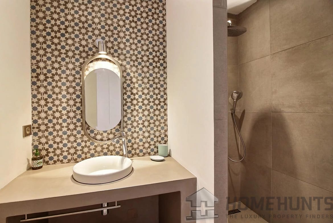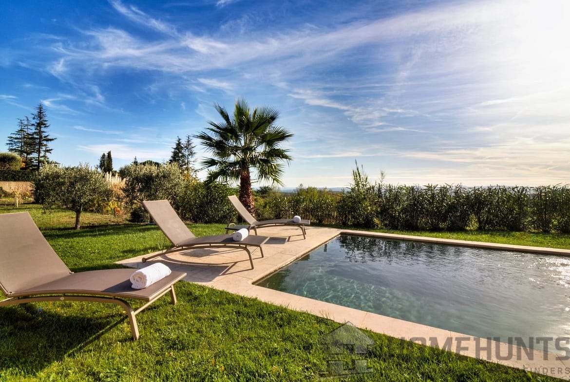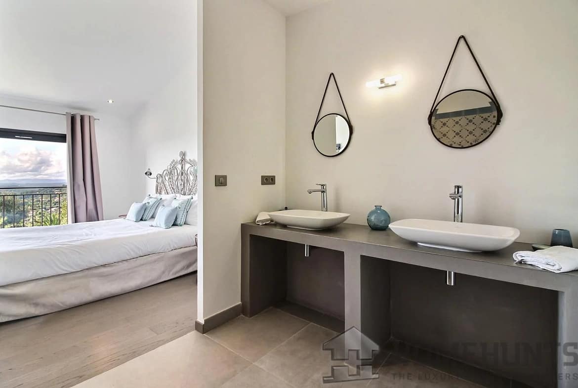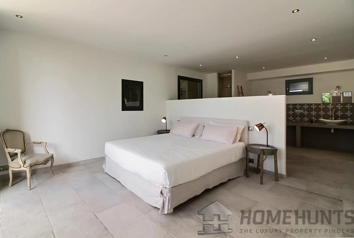 This converted farmhouse is located on the hills above the picturesque village of Vence. It’s a modern villa with a total of four bedrooms and three bathrooms.