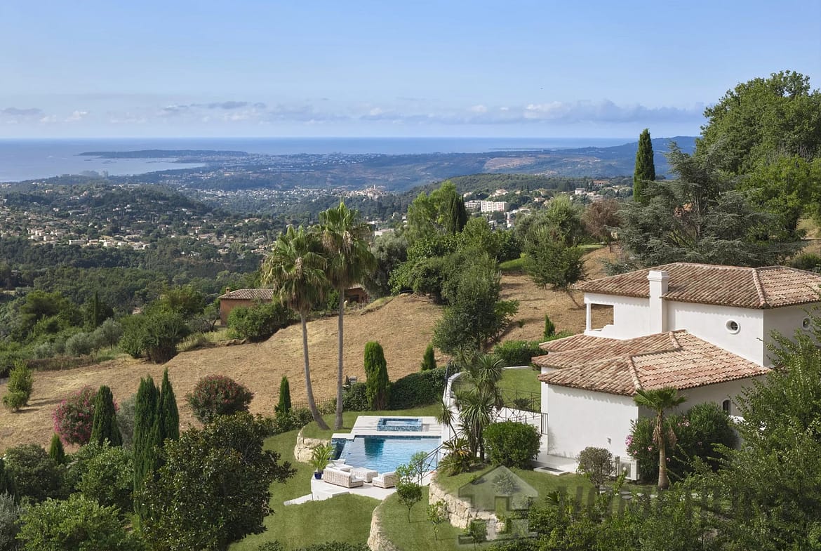 Located in one of the most sought-after areas of Vence, in a commanding position, L’Hacienda stands on a preserved hillside and offers an exceptional panorama: the Mediterranean stretching as far as the eye can see, from Cap Ferrat to Cap d’Antibes, with the majestic Baou de Saint-Jeannet as a backdrop.