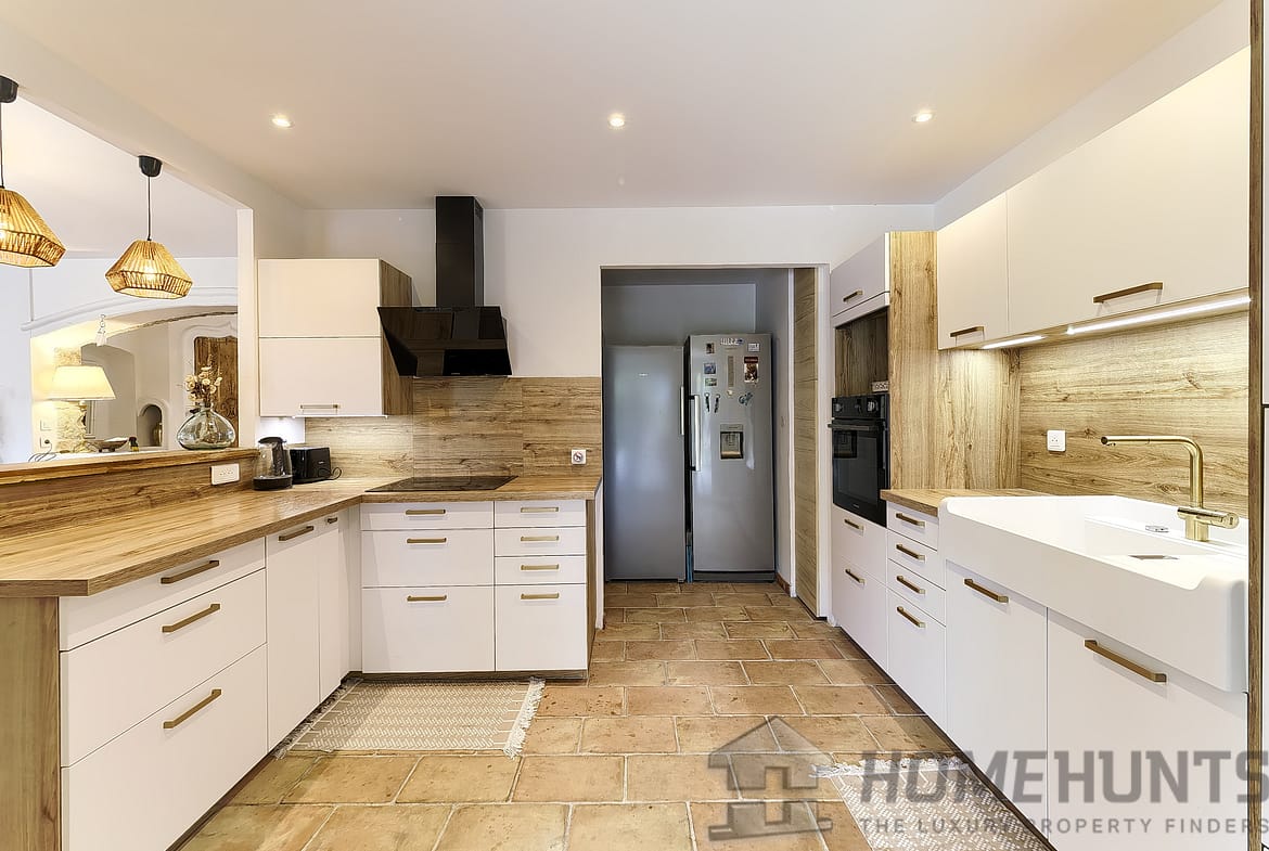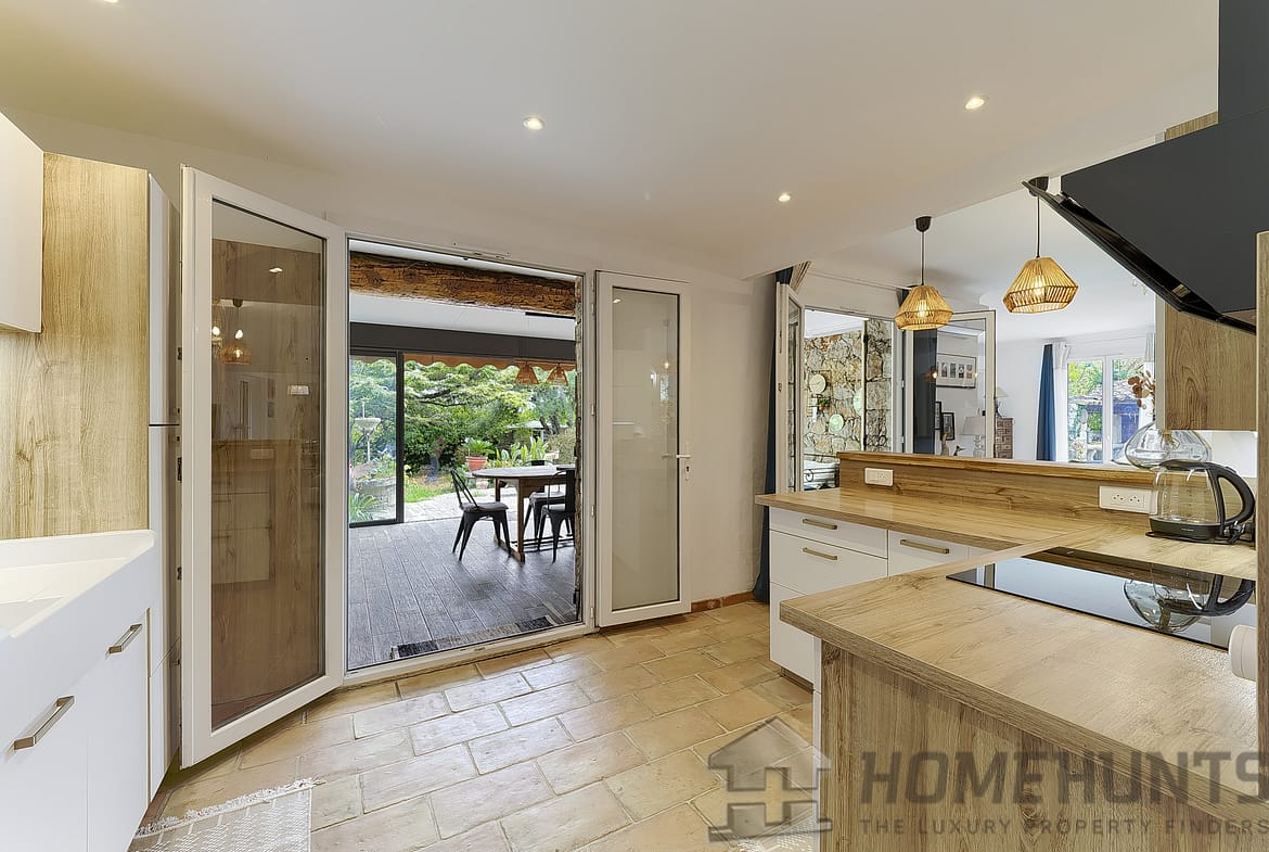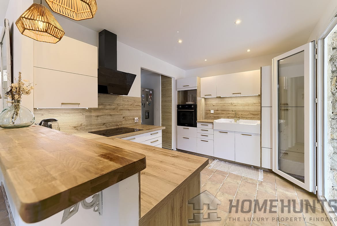 – Two terraces including a fully equipped summer kitchen with built-in barbecue and wrought iron features
