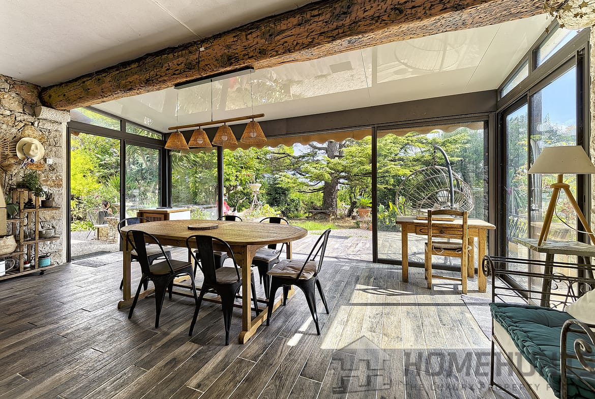 Located in a peaceful residential area just minutes from the historic center of Vence and all amenities, this elegant single-level stone villa combines Provençal charm with modern comforts. Set on a beautifully landscaped 2,189 m2 plot with majestic trees and Mediterranean essences, the property enjoys a privileged south/south-west exposure.