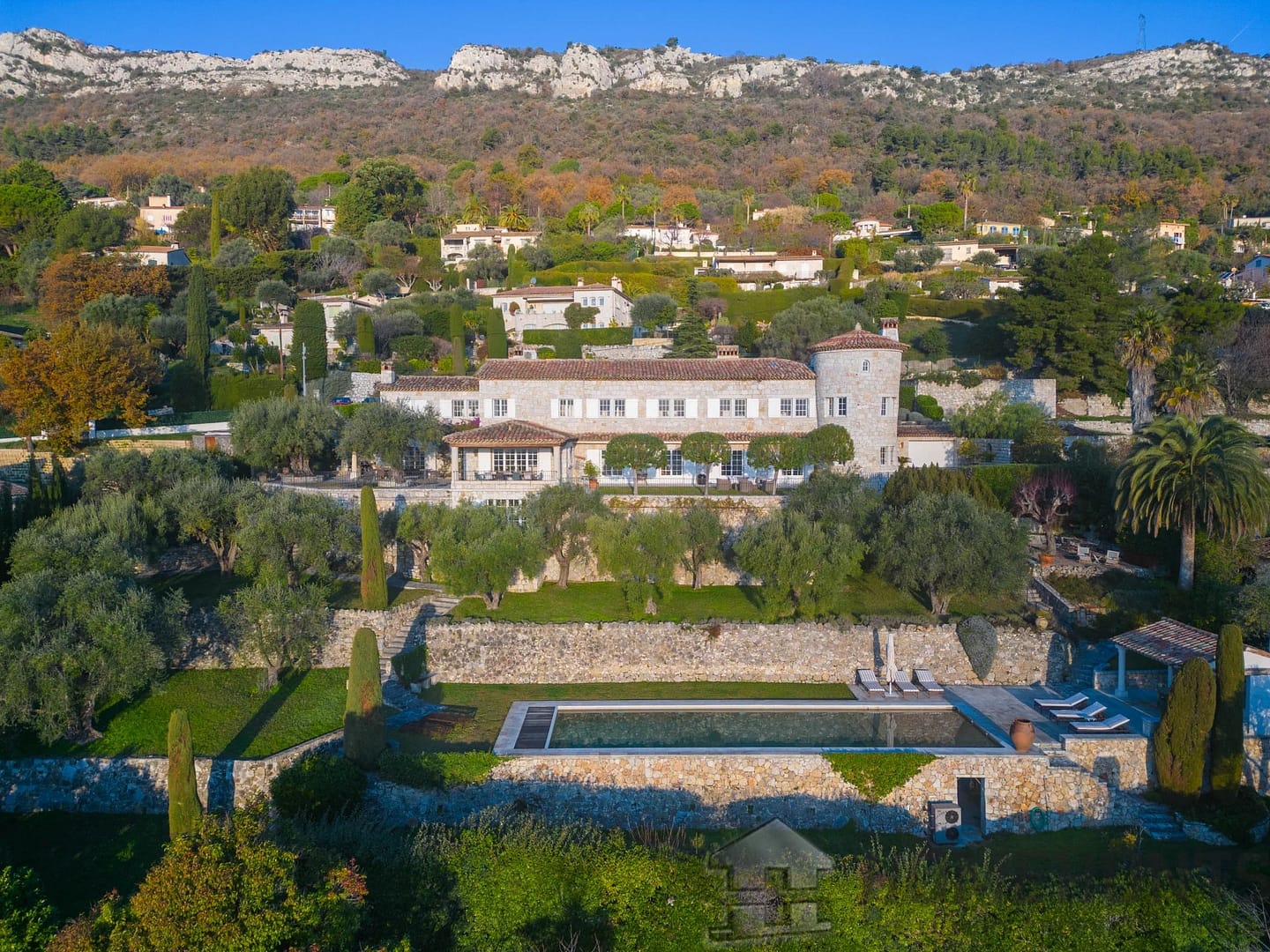 Against the dramatic backdrop of the southern Alps, this magnificent stone Mas rises from terraced gardens just minutes from the medieval village of Vence.