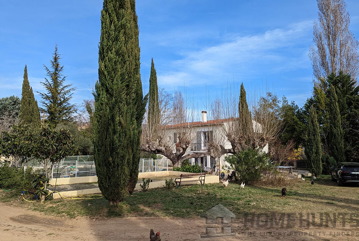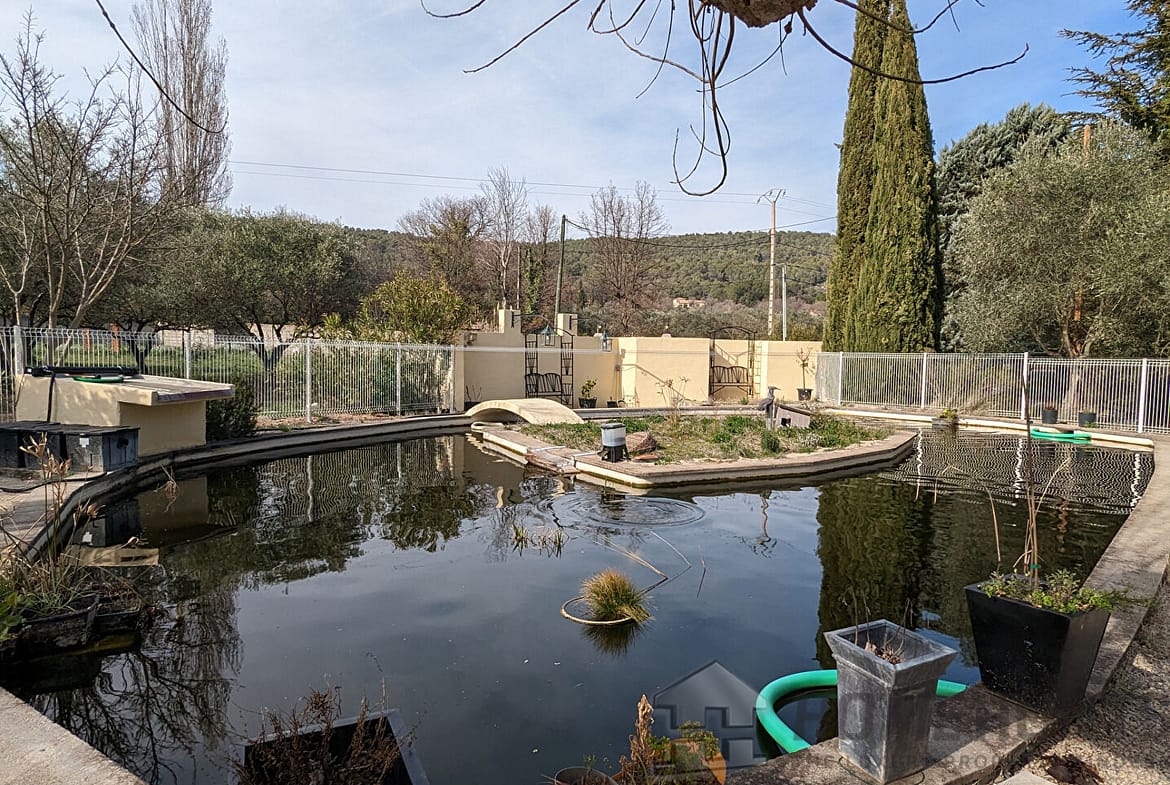 4.2 hectares of land planted with trees (209 olive trees) in a natural and agricultural zone, a large shaded terrace, a beautiful 12 x 6 m heated salt water swimming pool, a 52 m2 pool house converted into a guest house, a petanque court, a shed, a removable shelter to store maintenance equipment and a large fish pond (possibility of converting it into a second pool). The whole property is supplied with spring water.