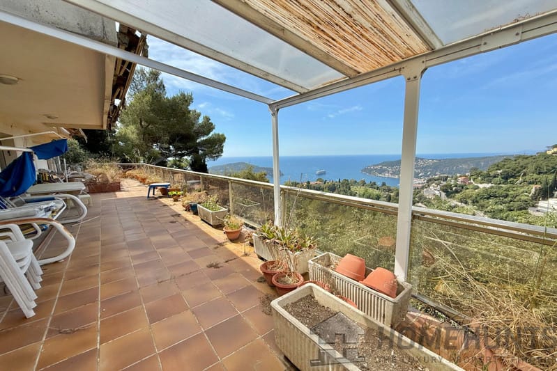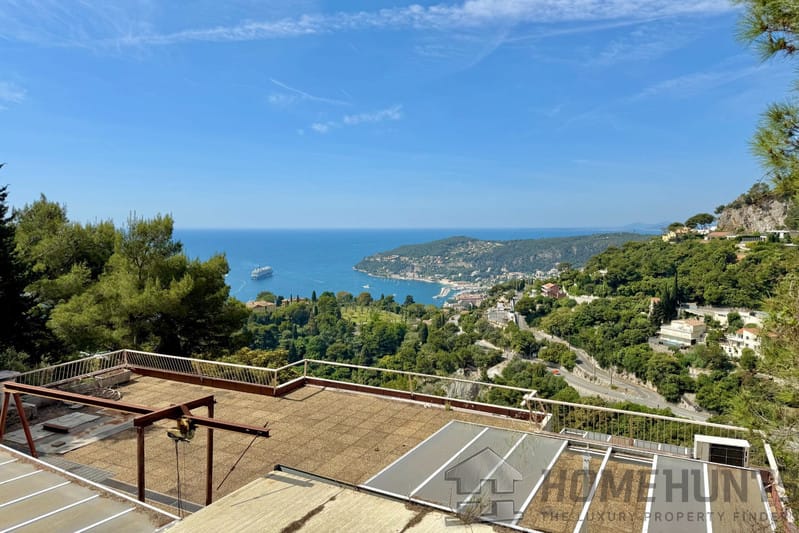 To renovate – Ideally situated on the heights of Villefranche-sur-Mer, along the middle corniche, this contemporary villa built in 1986 offers a privileged setting on a private cul-de-sac serving only two properties.
