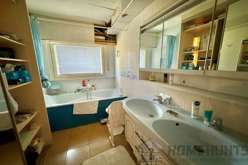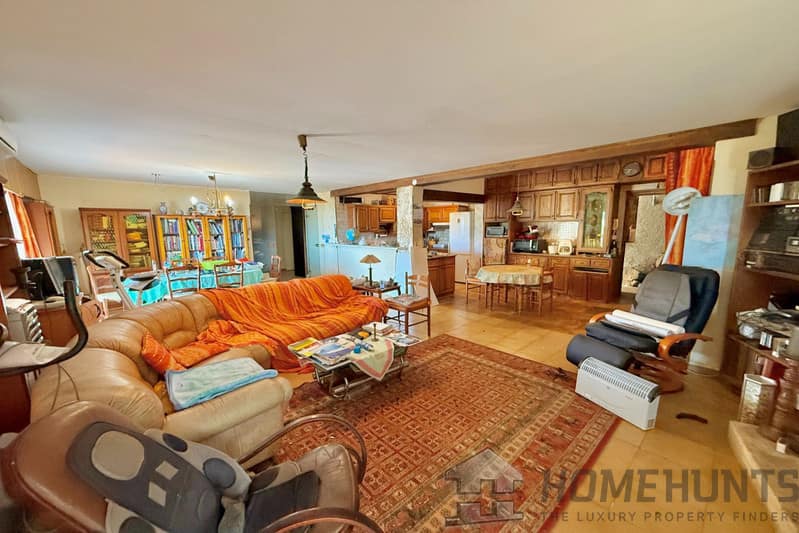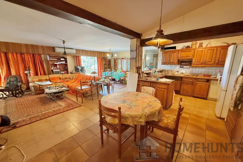 The 1,543 m2 plot hosts this contemporary-style villa that requires full renovation, both inside and out, offering exceptional potential to create a modern and unique residence.