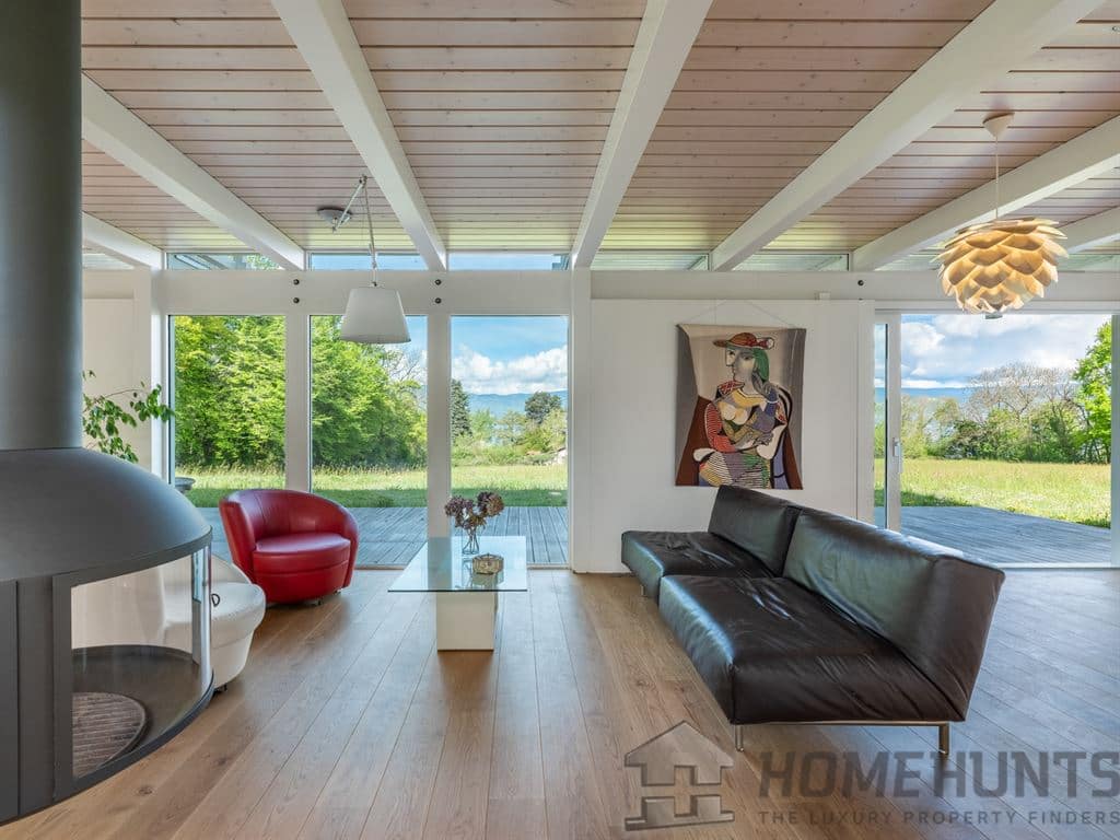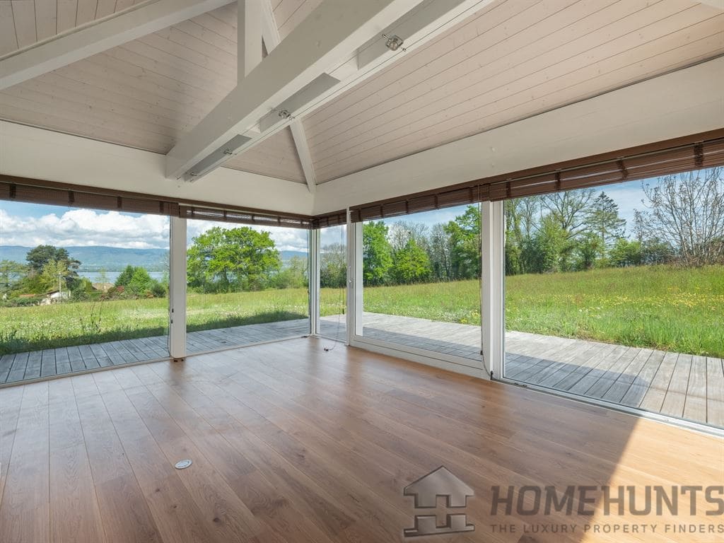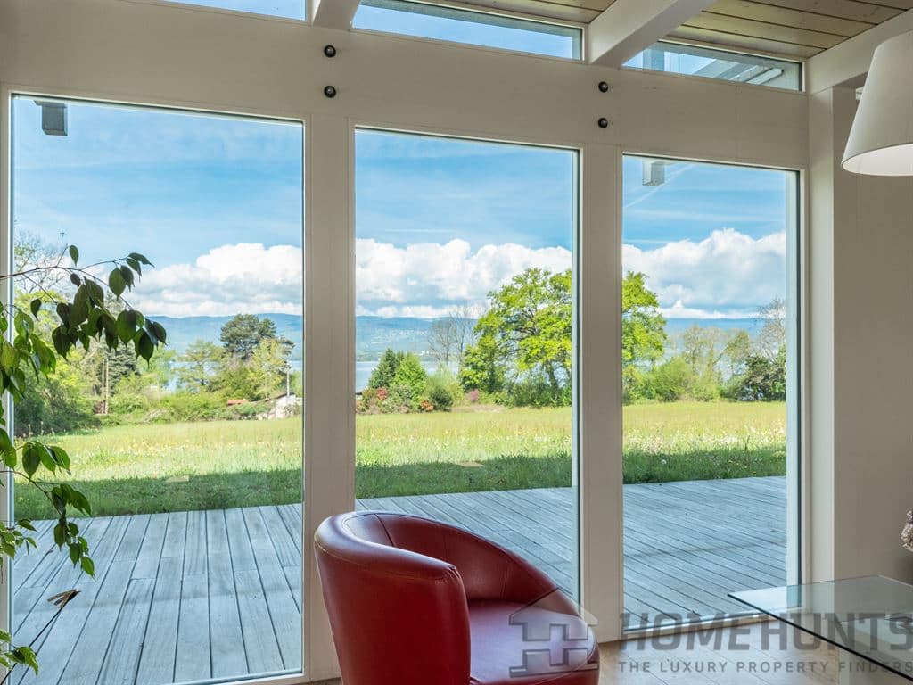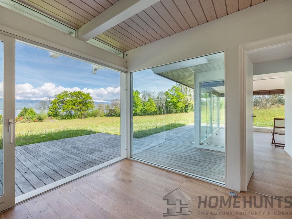 A truly privileged setting for this waterfront villa, built by AXE&D and designed with transparency in mind to fully embrace the panoramic views over Lake Geneva and the Swiss shoreline.