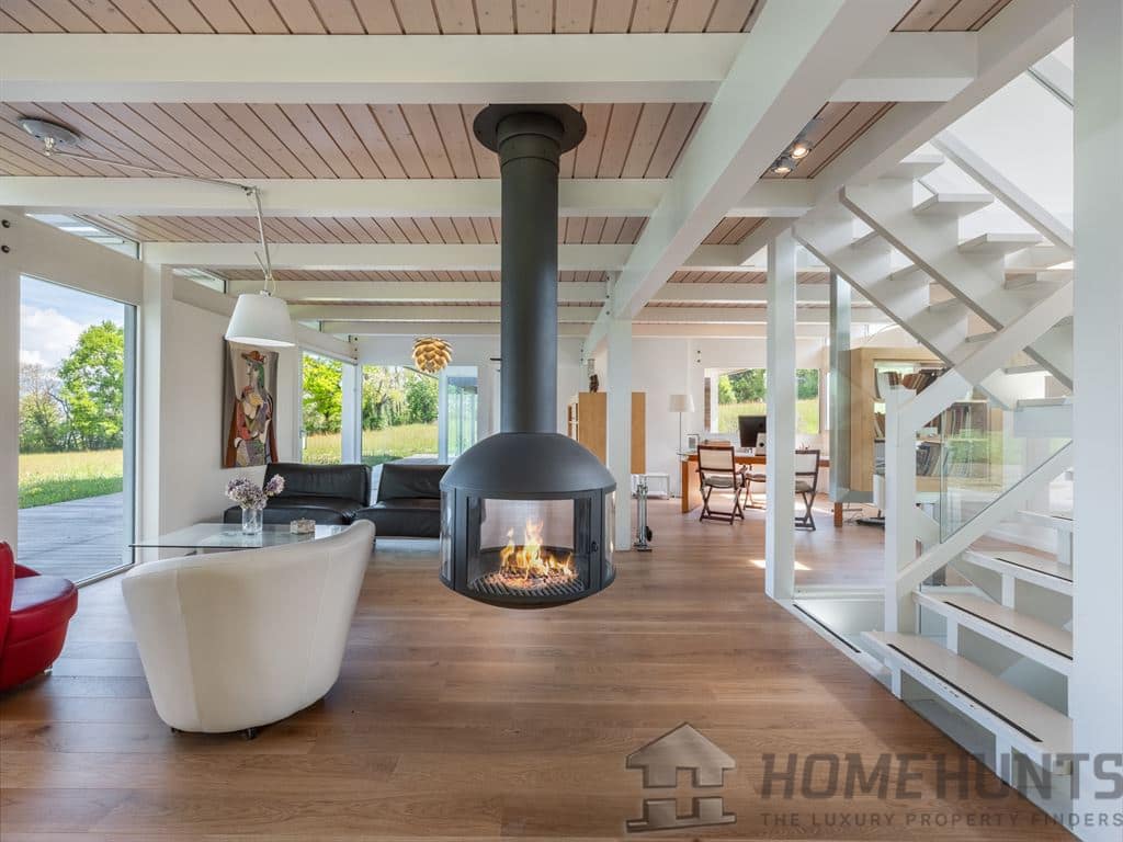 Set within over one hectare of beautifully landscaped grounds, the property boasts its own private pontoon, offering direct access to the lake.