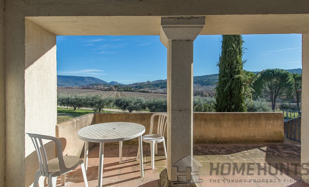 Apt is less than 5 km away, and Saint Saturnin-les Apt is also visible from the property; the TGV station is 40 km away, and Marseille Marignane airport is 1 hour away.