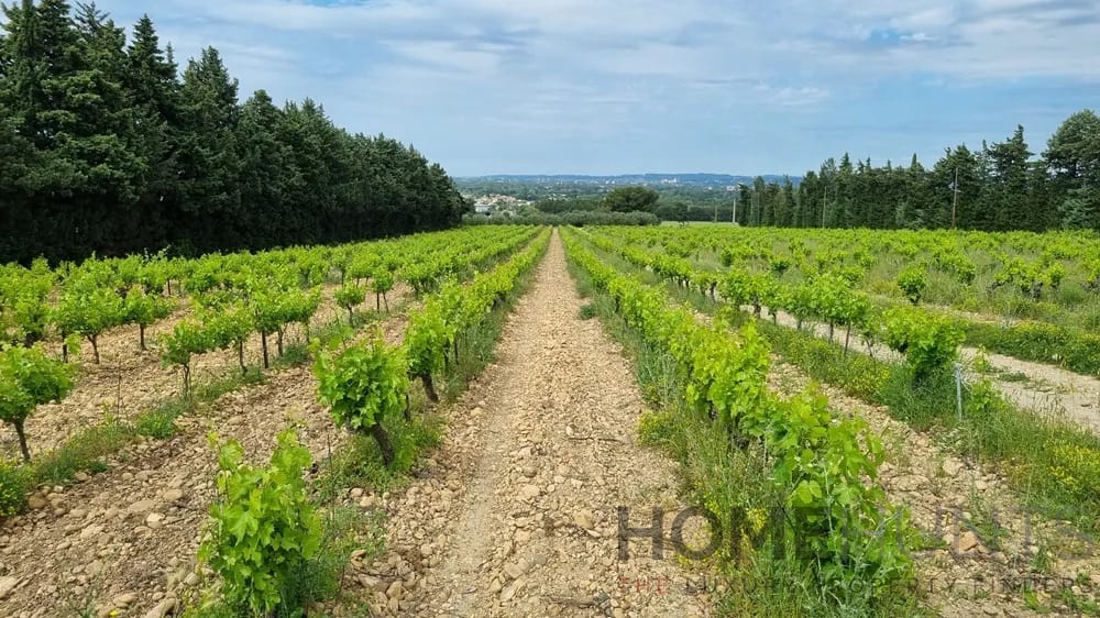 All the residential and farm buildings are set in the heart of the vineyards in a dominant position, with beautiful, unobstructed views over the city of Avignon.